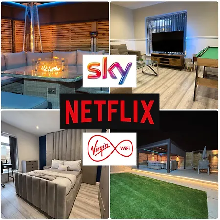 El 5 Bed Town House With Additional Luxury Hot Tub And Within City Centre And Sleeps Up To 11 With Sky And Netflix dispone de facilidades de autoservicio, como una cocina bien equipada y una zona de comedor y un comedor al aire libre para disfrutar de sus comidas. El aeropuerto más cercano es el aeropuerto Birmingham, a 20 km de este apartamento.